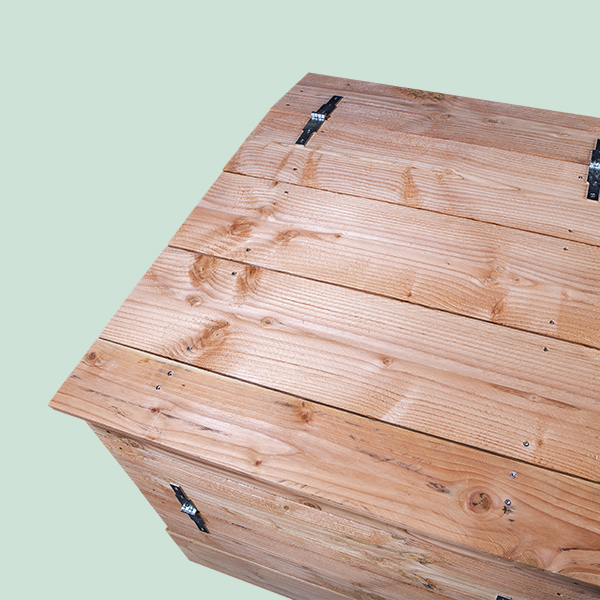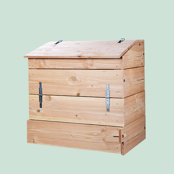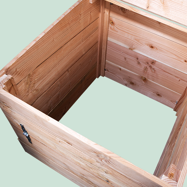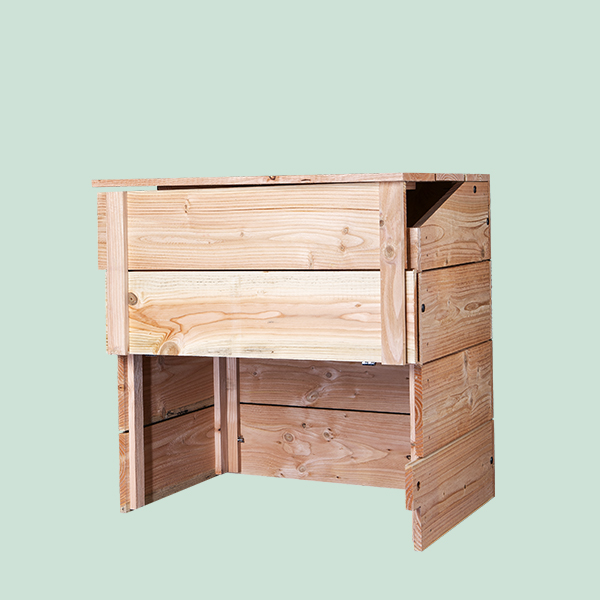 Composteur en bois Douglas PEFC fabriqué artisanalement en Gironde. Robuste, pratique et durable, compatible biodéchets et toilettes sèches. Deux tailles disponibles: 300L et 500L. À monter soi-même. Retrait sur place à Eysines ou Lacanau, près de Bordeaux.